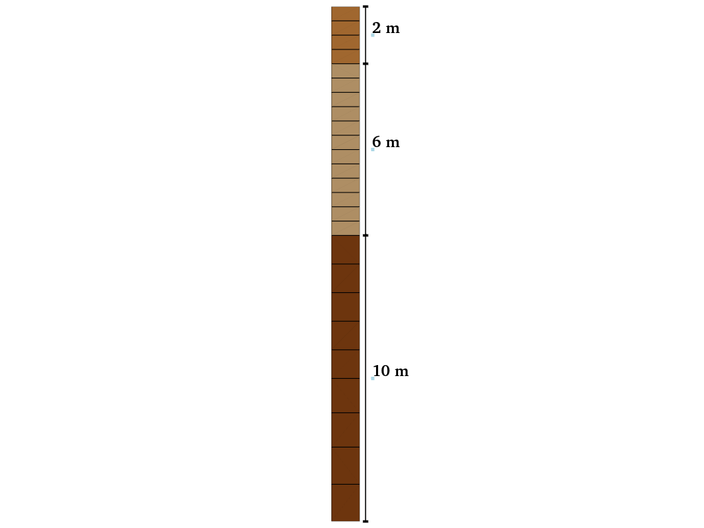 Layer 2: 6m thick (middle) - Medium stiffness material