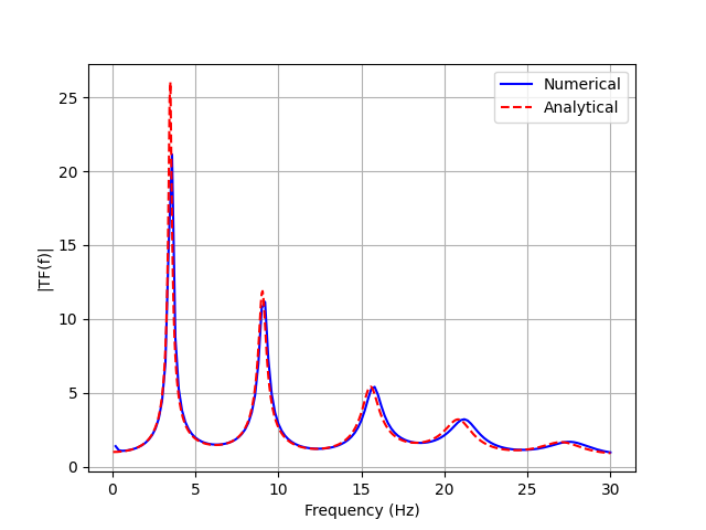 Comparison of analytical transfer function with numerical results from the deconvolved motion